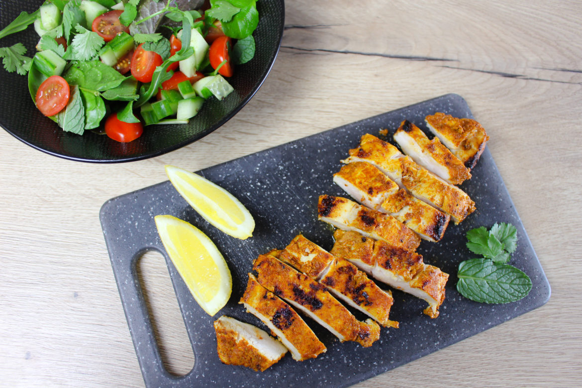 4. Couper le poulet et le servir avec la salade et les quartiers de citron.